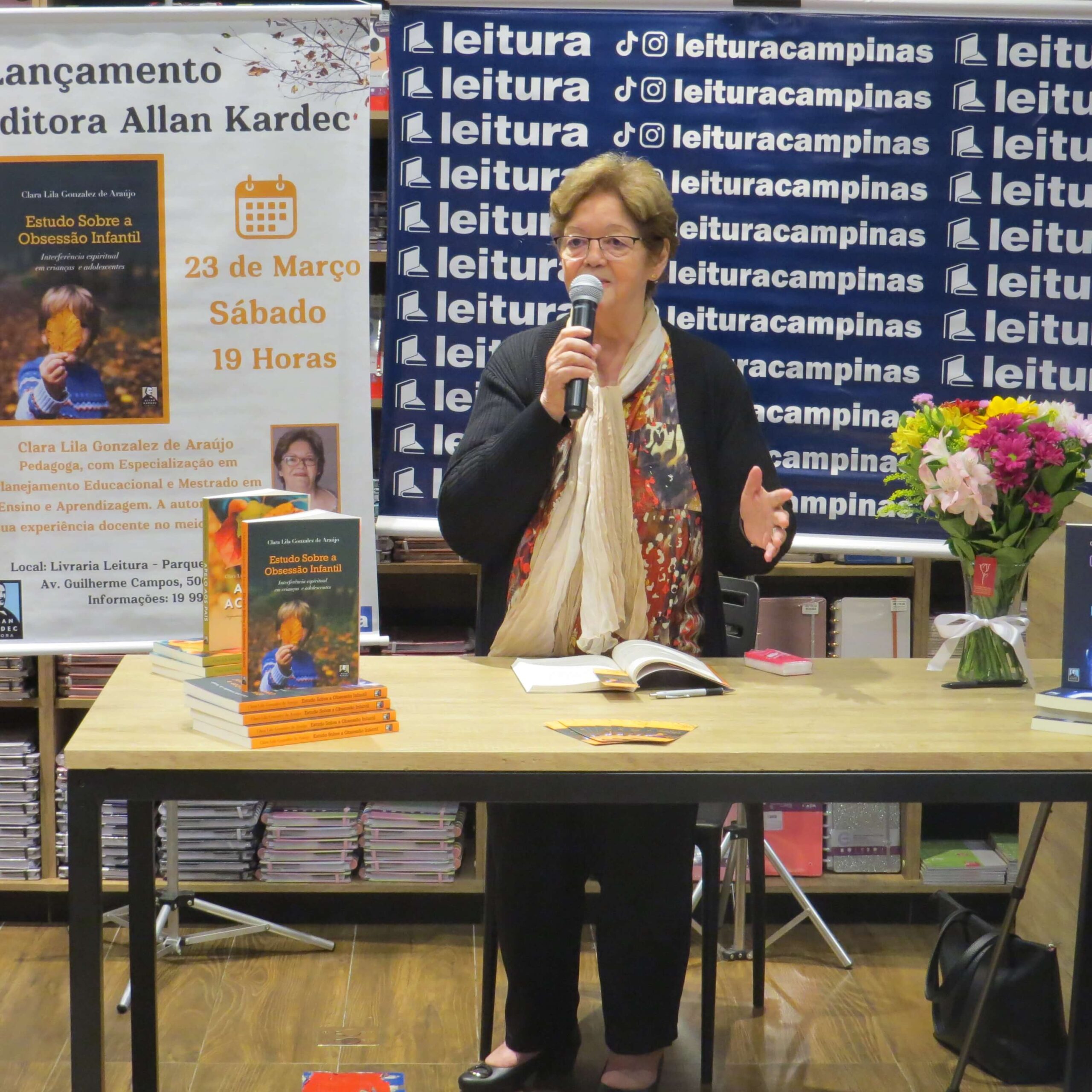 No dia 23 de março de 2024, a Editora Allan Kardec realizou o lançamento da obra “Estudo Sobre a Obsessão Infantil – Interferência espiritual em crianças e adolescentes”, de autoria de Clara Lila Gonzales de Araújo. O evento aconteceu na Livraria Leitura do Shopping Dom Pedro, em Campinas (SP), e reuniu leitores, amigos e entusiastas do Espiritismo interessados em compreender melhor os desafios espirituais enfrentados por crianças e jovens na atualidade.